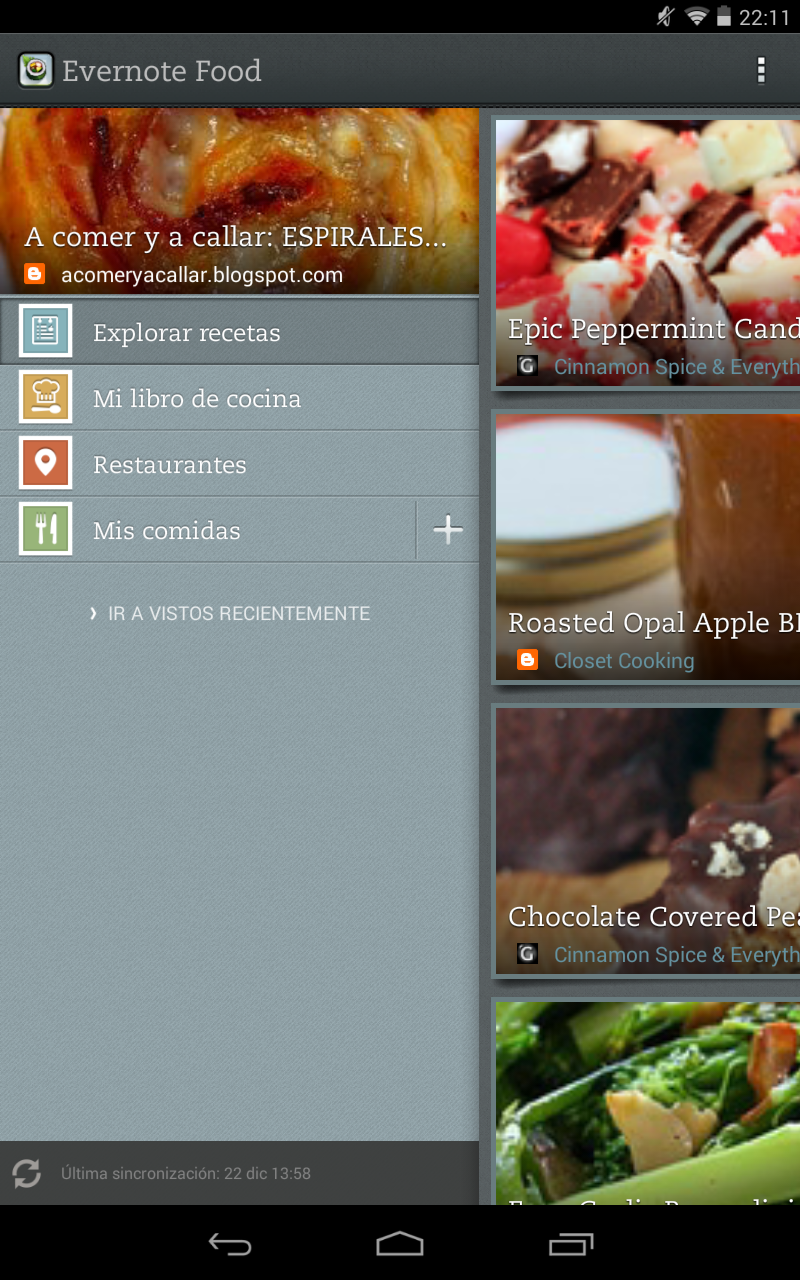 4.- Abrimos la aplicación Evernote Food en nuestro dispositivo móvil, vamos a «Mi libro de cocina», esperamos unos segundos a que sincronice…y ya está, nuestra receta capturada aparecerá en el listado.