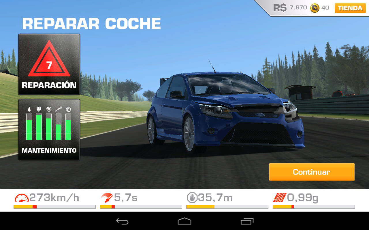 El factor tiempo es el que hace que te den ganas de usar los micropagos. Cuando tienes un coche y has corrido una carrera, tienes que reparar todos los golpes que te has dado, lo cual te cuesta dinero del juego y es inmediato. El problema viene con los mantenimientos. Cada coche, después de unas carreras tiene que pasar por unos cambios de aceite, ruedas, frenos, etc.. Y esos se prolongan más.