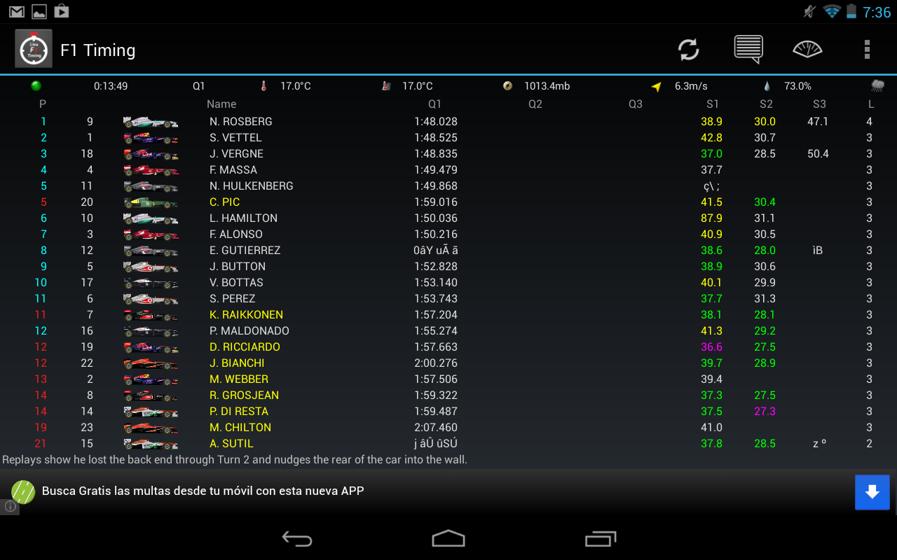Podremos ver los comentarios de F1.com y los tiempos de cada piloto, con sus parciales.