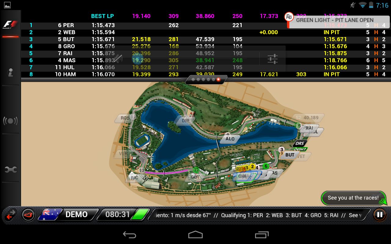 Estamos ante una autentica maravilla de aplicación, realmente tiene todo lo que necesitamos, posición real de los pilotos en carrera, mediciones de tiempo en tiempo real, información de carrera, estado de pista, etc… Lo tiene todo y encima con un diseño elegante y limpio… Su gran problema.. 29,99 Euros y solo te sirve para un año.