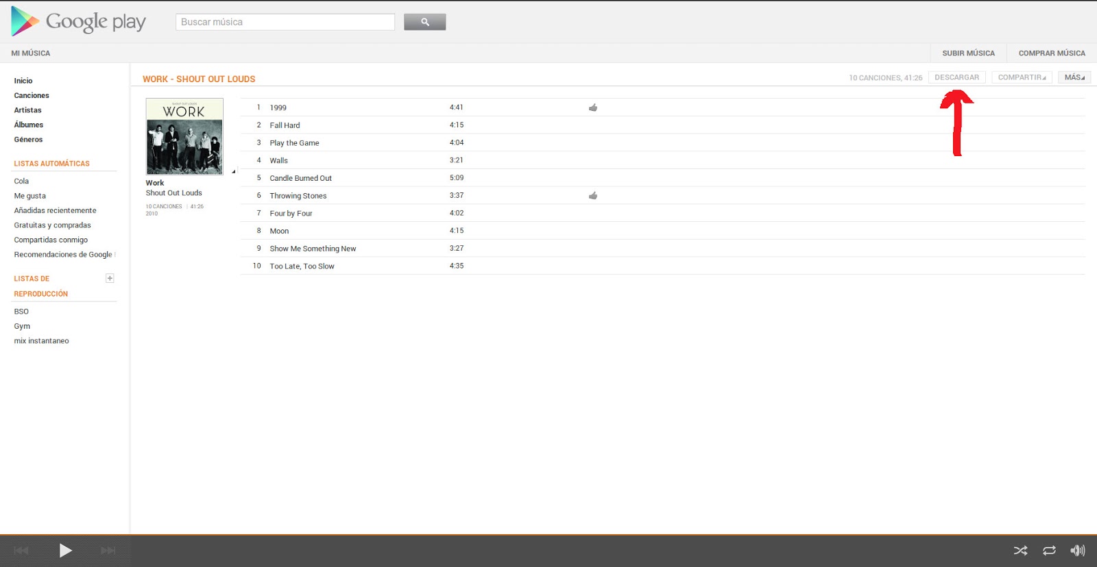 - Ahora ya podremos reproducir el disco en cualquier ordenador con conexión a internet. Además podremos descargarlo simplemente seleccionando las canciones que queremos descargar y pulsando sobre DESCARGAR