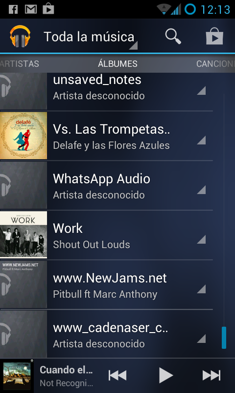 - Abrimos la aplicación Play Music y veremos todos los discos que tenemos en nuestro teléfono móvil, y el que hemos subido a Google Music.