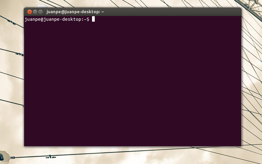 Buscad en el menú de aplicaciones, dentro de la parte de sistema, la aplicación Terminal, o bien si usáis Ubutu con entorno Unity, el botón superior arriba a la izquierda y escribís Terminal, Os aparecerá la aplicación terminal, pulsad sobre ella y veréis lo siguiente: